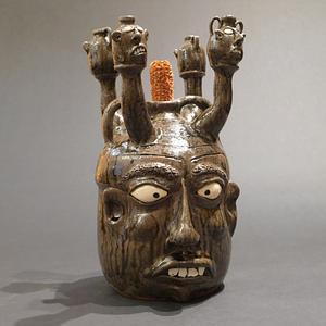 It’s time again for our most anticipated show of the year! Join us for our 14th Annual Face Jug Show, as we celebrate living American history! This year’s collection weaves together all the storied origins of these culturally iconic vessels to create a rich tapestry of history and legacy. Modern face jug making draws from different cultures and customs, producing a beautiful patchwork that combines all these aspects into something altogether unique. In the Appalachian region, face jug folklore claims these vessels would use snakes, grimacing faces, or devil horns to frighten children away from the alcohol that often would be stored inside. The roots of the tradition, however, run much deeper, derived from a practice that came to America with enslaved Africans. Placing a face vessel as a gravemarker was meant to ward off evil spirits to allow the soul of the dead to peacefully transition to the next world.
