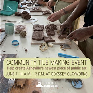 Do you enjoy making art? Want to create a piece that will live in Asheville for years to come? Join us at Odyssey Clayworks in the River Arts District on June 7 to help make tiles for public artwork that will be installed on the Reed Creek Greenway near Broadway Public Safety Station!