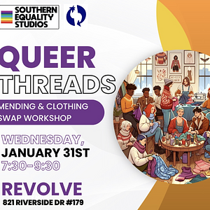 Join us on January 31st from 7:30 PM to 10:00 PM at Revolve ( at 821 Riverside Drive, Asheville) for a regenerative clothing Swap and mending workshop! Bring along clothes you wish to pass on to another community member and any clothing or small projects you'd like to mend or modify. At the workshop, we'll also explore the inspiring work of LGBTQ+ designers, textile artists, and how they weave their work into functional activism. We'll learn about inclusive fashion brands that cater to all forms of gender expression along with local resources you can use if you want to build up your skills. Together, let's embrace sustainable fashion and the freedom of self-expression! Supplies will be provided, but feel free to bring any supplies you have! Snacks and N/A drinks will also be provided! Masks are required and available for this event.