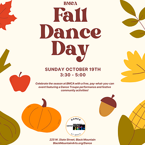 Celebrate the fall season with movement, creativity, and community at BMCA! Join us for a pay-what-you-can / free event featuring a performance of BMCA’s Dance Troupe’s new fall choreography in our theater, followed by festive activities upstairs in the dance studio. Families and kids can enjoy autumn-themed crafts, games, and activities.