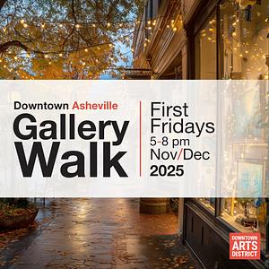 The Downtown Asheville Arts District invites you to celebrate the season with the continuation of the Downtown Asheville Gallery Walk, happening Friday, November 7 and Friday, December 5, from 5–8 PM.