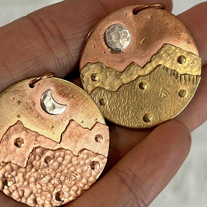 Create your own Mountain landscape in brass and copper, complete with a silver moon in the sky. Enjoy your own fully-equipped jeweler's bench and learn sawing, filing, sanding, riveting, stamping, texturing, and more! You'll even get to play with fire! This class is 3 hours. All materials included. All skill levels welcome. Open to ages 9 and up.