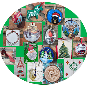 Check out our 10-foot tall wire ornament tree for Dala horses painted by Deborah Anderson, origami-paper wooden eggs crafted by Li Newton, and wood-burned ornaments by Chalkley Matlack. Smile as you look for Kim Coon’s whimsical bears and Santas and Tani Reeves’ trolls. Alec Shalda’s clay candy canes and the shape of North Carolina are ready for hanging on a tree. Look for the shimmering of metal in Lisa Underwood’s coiled ornaments and Julie Bell’s wire wreathes. Natural scenes abound with Zoe Schumaker’s painted, winter scenes by Melissa Kucin, and snowmen and snow-covered trees by Kimberly Smith. For sports fans, Mike Floyd’s baseballs are a perfect gift. More artists are adding ornaments daily; it’s an adventure to see what’s new!