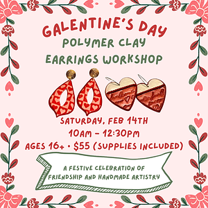 Celebrate friendship and creativity this Galentine's Day at the Black Mountain Center for the Arts! Join us for a fun, hands-on workshop where you'll create your own pair of unique polymer clay earrings to wear or gift to your favorite gals.