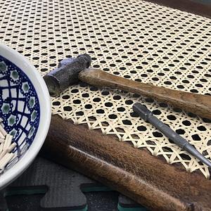 Learn to weave a hand-woven cane seat with rattan strands threaded through holes drilled into a chair frame. No experience necessary. Moderate hand strength and the ability to work standing up is required. Modifications can be made for various conditions.
