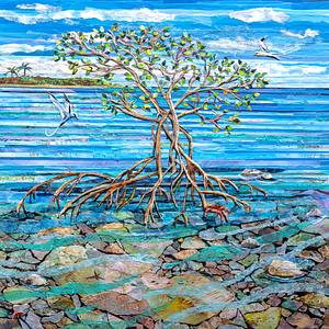 My recent artwork could fall under the categories of collage and/or mixed media. Analog collages are hand cut or torn paper, fabric or both, usually from recycled materials. No digital manipulation is used. All collages are sealed with several layers of acrylic varnish.
